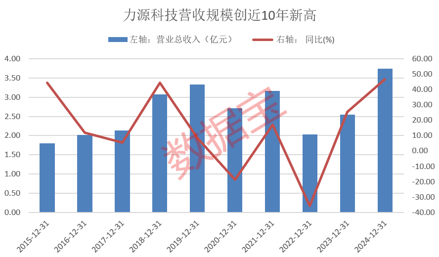 力源科技2024年业绩扭亏,公司营业总收入3.74亿元,同比上升46.58%,归母净利润253.89万元,同比扭亏。报告期内,公司始终坚持科创定位和高质量发展,持续深耕主业,以优质项目为主线,巩固优势市场,拓展增量市场,营业收入同比增长,创近10年最高纪录。